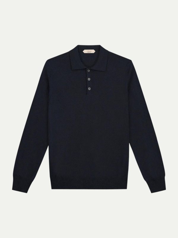 Men Extrafine Merino Polo Navy | Aurélien Knitwear